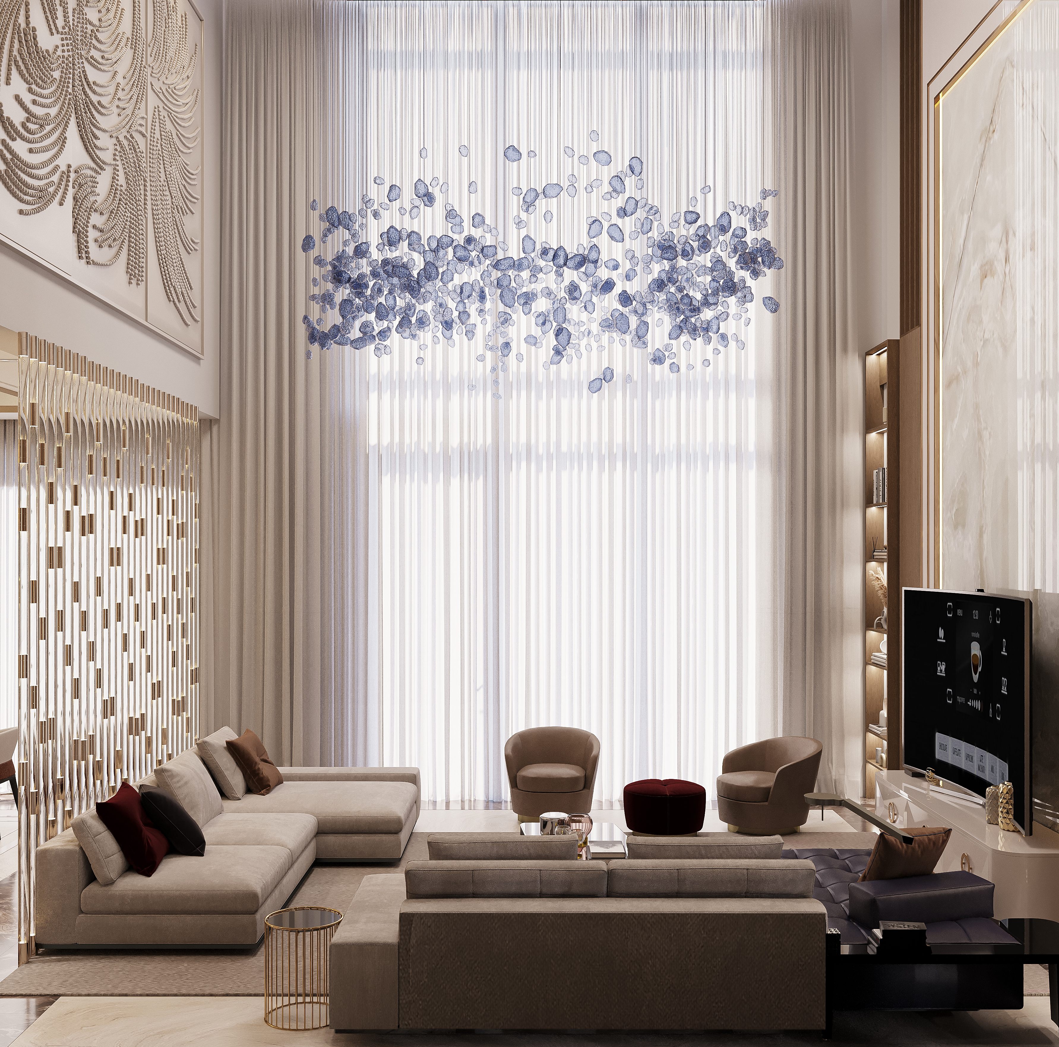 Сердце дома - монументальное двусветная гостиная с высотой потолков более 6 м.